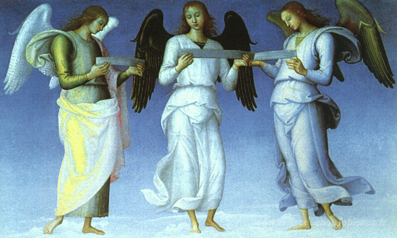Nous vous proposons une reproduction artisanale sur toile du célèbre tableau 'Angels (détail)' de Pietro Perugino, provenant du Musée de la Reproduction.