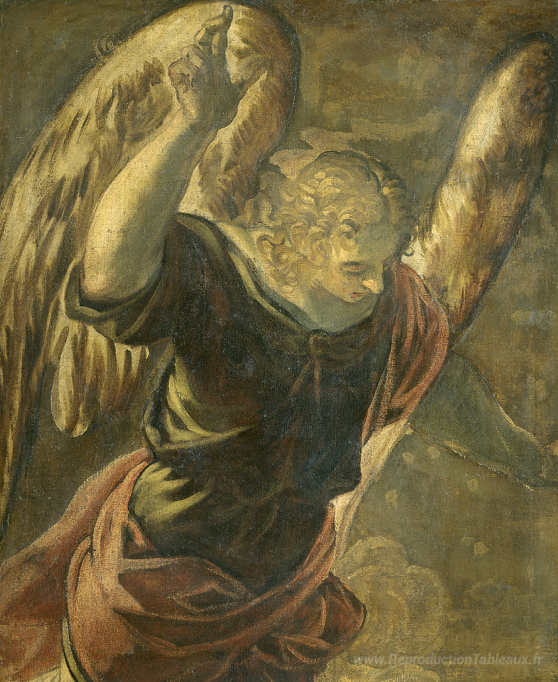 Nous vous proposons une reproduction artisanale sur toile du célèbre tableau 'Annonciation l'ange' de Tintoretto, provenant du Musée de la Reproduction.