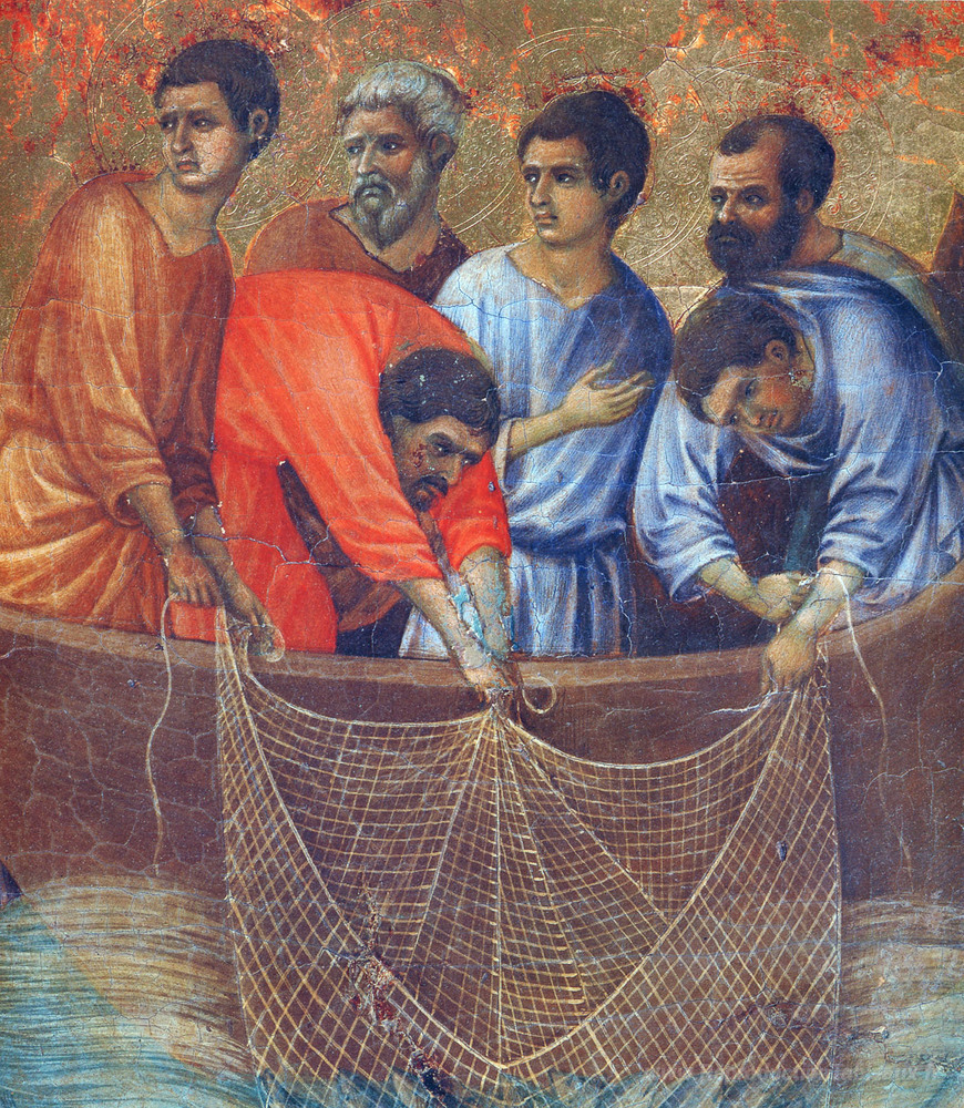 Nous vous proposons une reproduction artisanale sur toile du célèbre tableau 'Apparence du Christ aux apôtres (fragment)' de Duccio, provenant du Musée de la Reproduction.