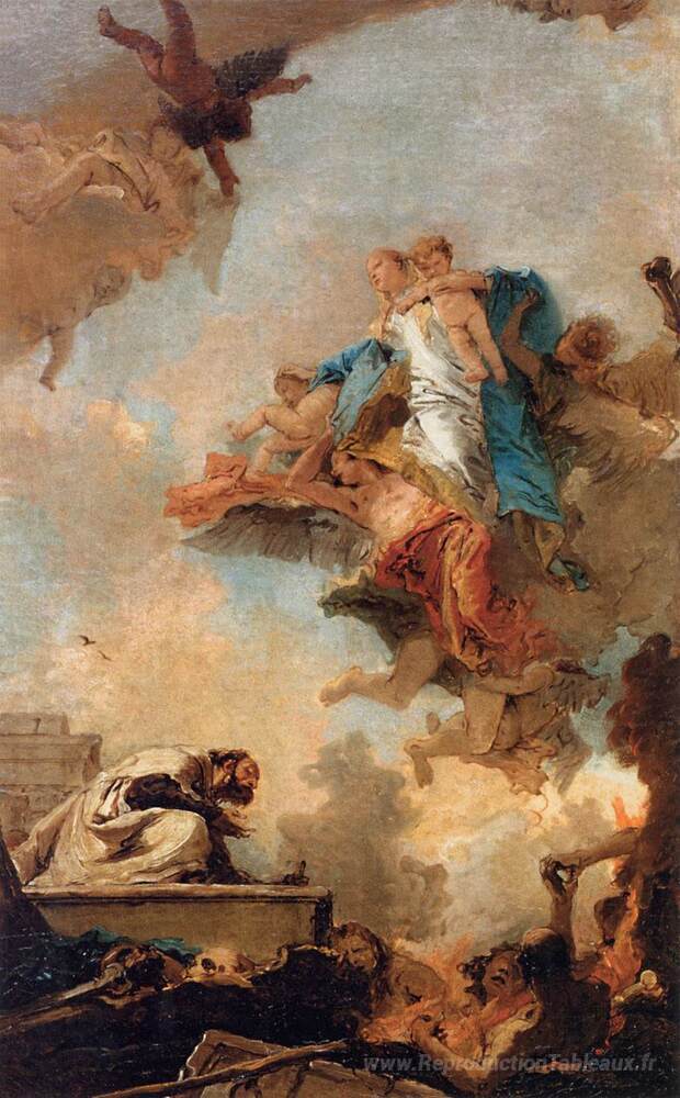 Nous vous proposons une reproduction artisanale sur toile du célèbre tableau 'Apparition de la Vierge à St Simon Stock' de Giovanni Battista Tiepolo, provenant du Musée de la Reproduction.