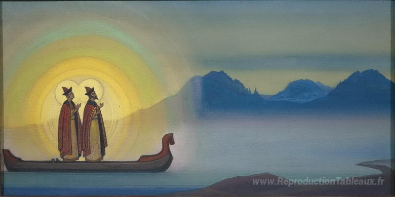 Nous vous proposons une reproduction artisanale sur toile du célèbre tableau 'Boris et gleb' de Nicholas Roerich, provenant du Musée de la Reproduction.