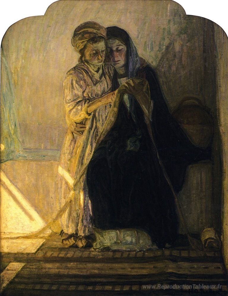 Nous vous proposons une reproduction artisanale sur toile du célèbre tableau 'Christ apprenant à lire' de Henry Ossawa Tanner, provenant du Musée de la Reproduction.