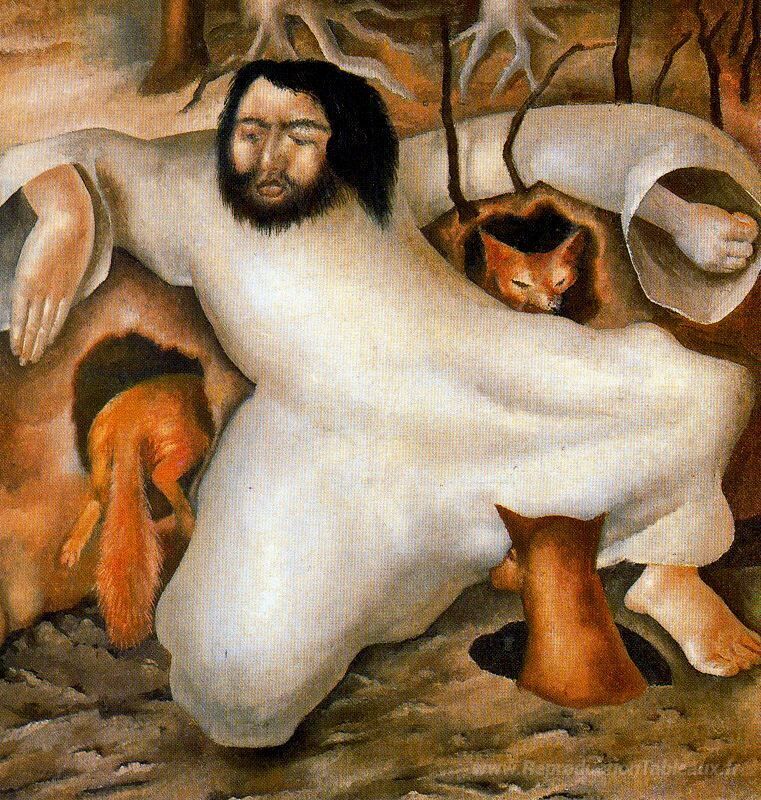 Nous vous proposons une reproduction artisanale sur toile du célèbre tableau 'Christ dans le désert - les renards ont des trous' de Stanley Spencer, provenant du Musée de la Reproduction.