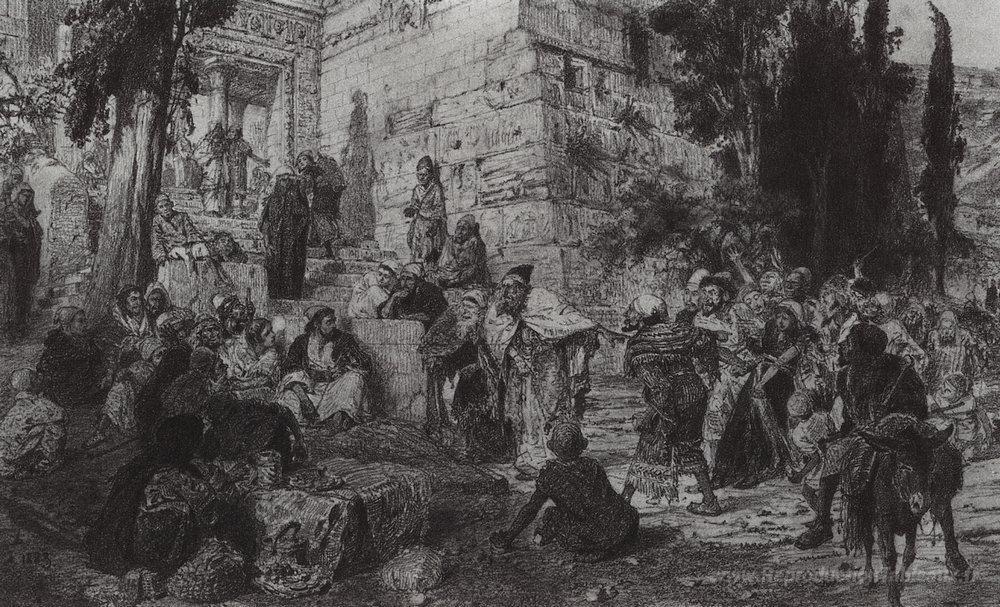 Nous vous proposons une reproduction artisanale sur toile du célèbre tableau 'Christ et le pécheur' de Vasily Polenov, provenant du Musée de la Reproduction.