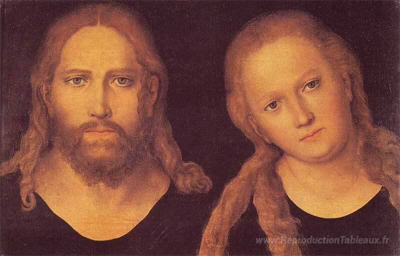 Nous vous proposons une reproduction artisanale sur toile du célèbre tableau 'Christ et Marie' de Lucas Cranach the Elder, provenant du Musée de la Reproduction.