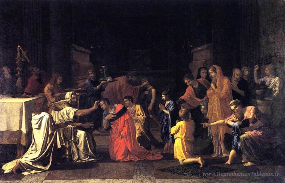 Nous vous proposons une reproduction artisanale sur toile du célèbre tableau 'Conferma' de Nicolas Poussin, provenant du Musée de la Reproduction.