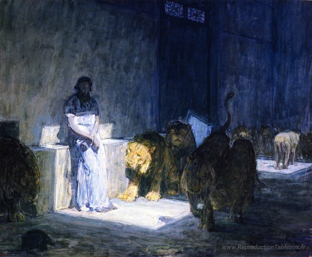 Nous vous proposons une reproduction artisanale sur toile du célèbre tableau 'Daniel dans la tanière des Lions' de Henry Ossawa Tanner, provenant du Musée de la Reproduction.