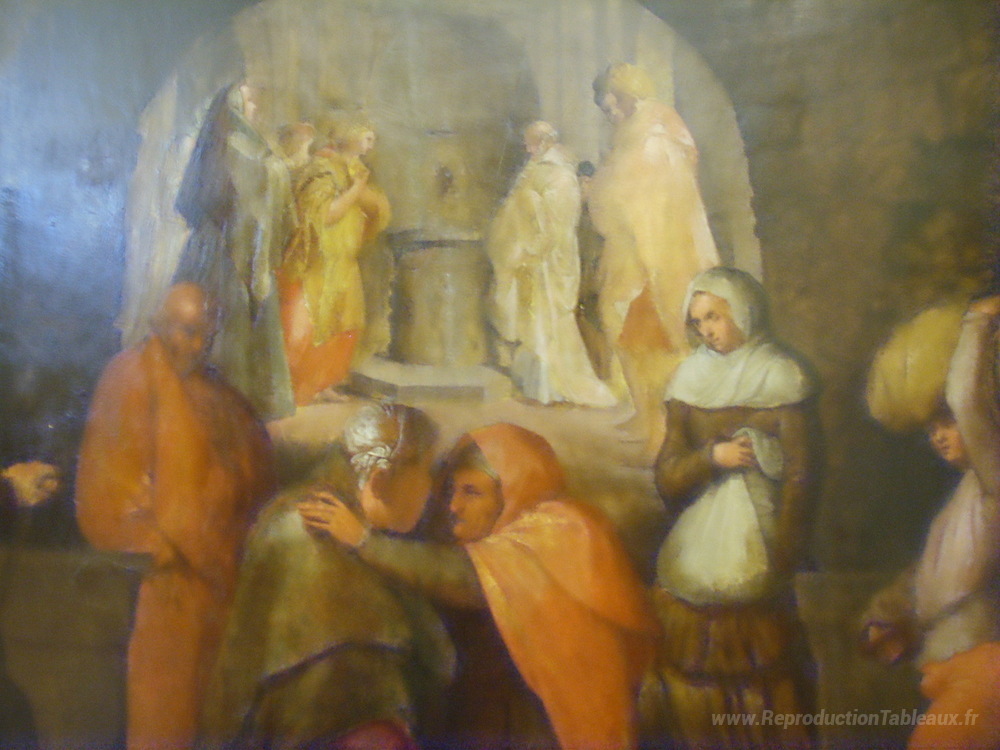 Nous vous proposons une reproduction artisanale sur toile du célèbre tableau 'Dernière Cène' de Andrea del Sarto, provenant du Musée de la Reproduction.