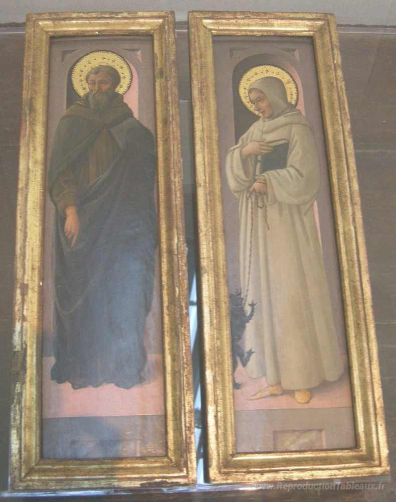 Nous vous proposons une reproduction artisanale sur toile du célèbre tableau 'Deux saints' de Filippo Lippi, provenant du Musée de la Reproduction.