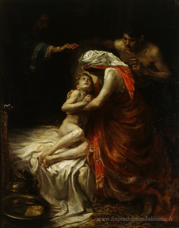 Nous vous proposons une reproduction artisanale sur toile du célèbre tableau 'Elisha et le fils de la femme Shunammite' de Jan Sluyters, provenant du Musée de la Reproduction.