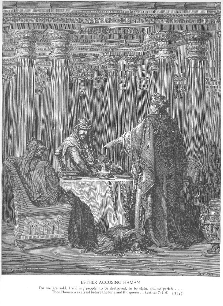 Nous vous proposons une reproduction artisanale sur toile du célèbre tableau 'Esther accuse Haman' de Gustave Dore, provenant du Musée de la Reproduction.