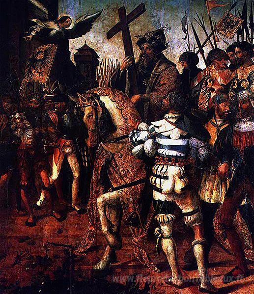 Nous vous proposons une reproduction artisanale sur toile du célèbre tableau 'Exalta??o da Santa Cruz' de Cristovao de Figueiredo, provenant du Musée de la Reproduction.