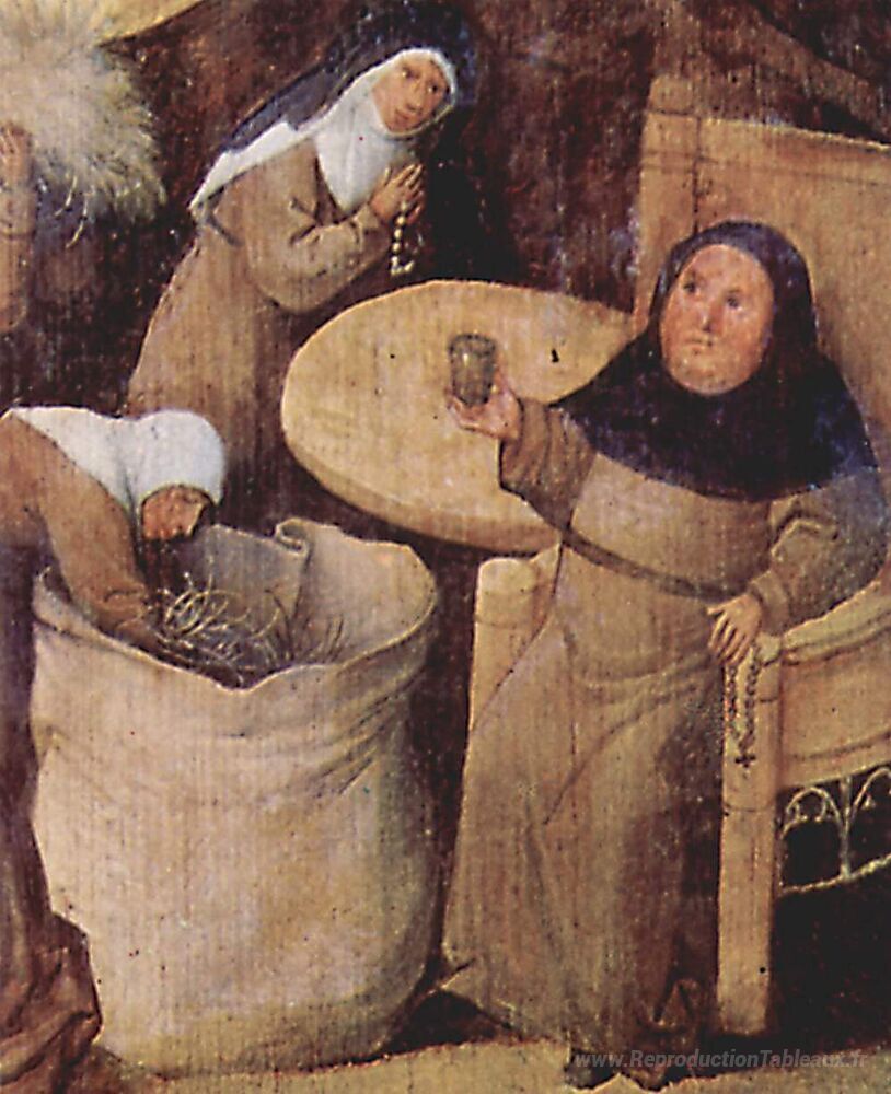 Nous vous proposons une reproduction artisanale sur toile du célèbre tableau 'Haywain (détail)' de Hieronymus Bosch, provenant du Musée de la Reproduction.