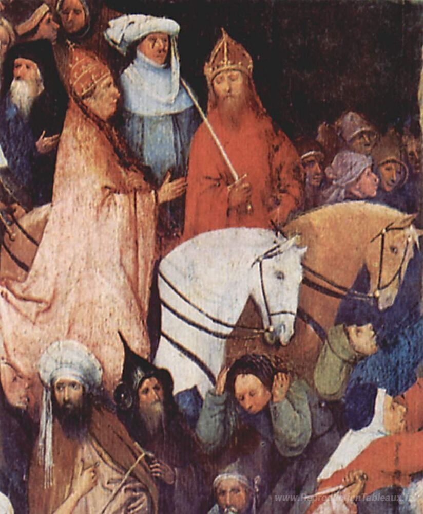 Nous vous proposons une reproduction artisanale sur toile du célèbre tableau 'Haywain (détail)' de Hieronymus Bosch, provenant du Musée de la Reproduction.