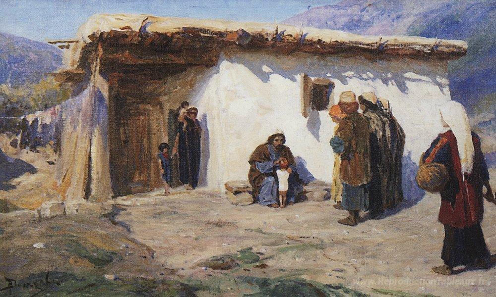 Nous vous proposons une reproduction artisanale sur toile du célèbre tableau 'Ils ont amené les enfants' de Vasily Polenov, provenant du Musée de la Reproduction.