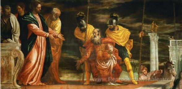 Nous vous proposons une reproduction artisanale sur toile du célèbre tableau 'Jésus guérit le serviteur d'un centurion' de Paolo Veronese, provenant du Musée de la Reproduction.