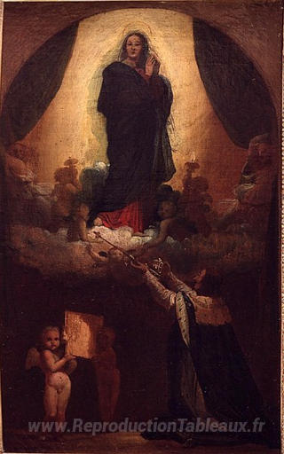 Nous vous proposons une reproduction artisanale sur toile du célèbre tableau 'J'ai d'abord pensé au vœu de Louis XIII' de Jean Auguste Dominique Ingres, provenant du Musée de la Reproduction.