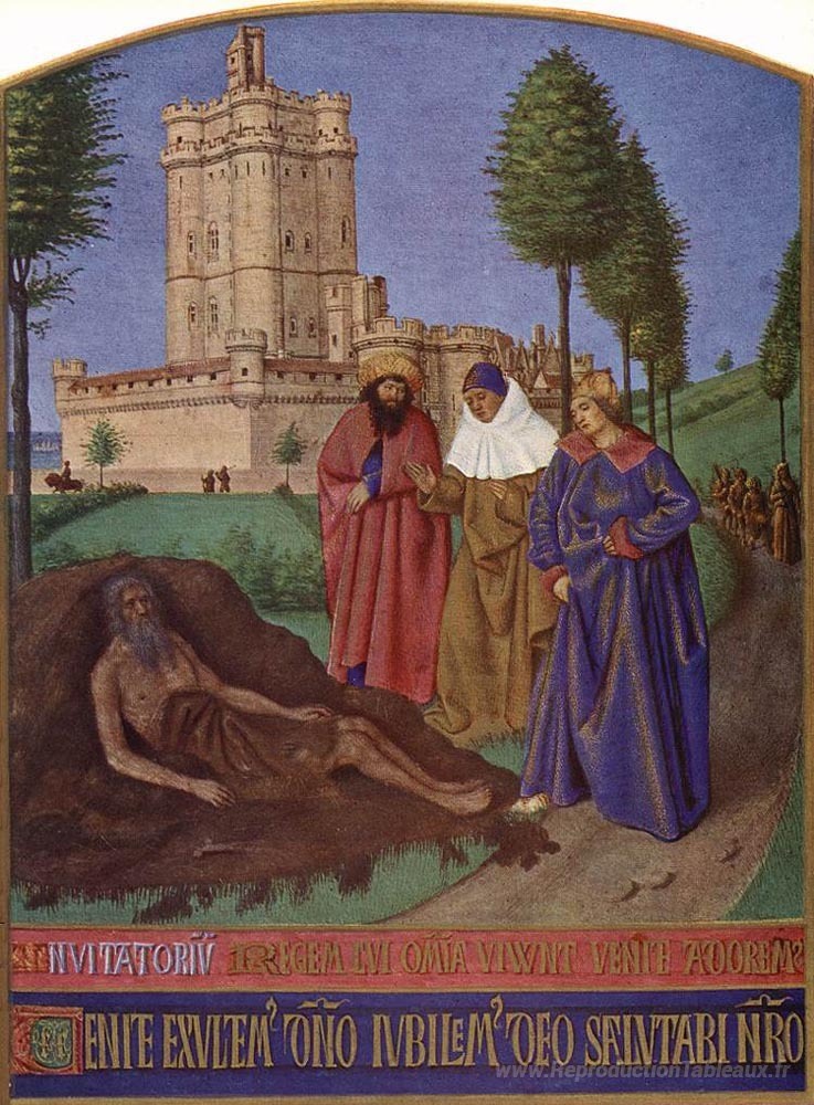 Nous vous proposons une reproduction artisanale sur toile du célèbre tableau 'Job et ses fausses couettes' de Jean Fouquet, provenant du Musée de la Reproduction.