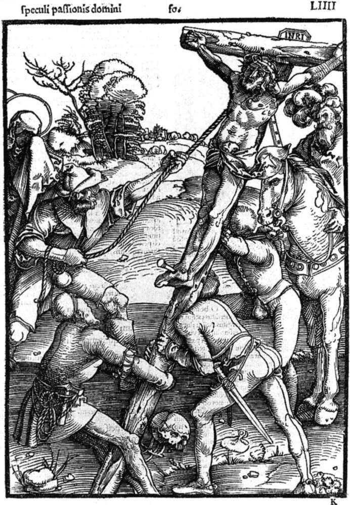 Nous vous proposons une reproduction artisanale sur toile du célèbre tableau 'L'érection de la croix' de Hans Baldung, provenant du Musée de la Reproduction.