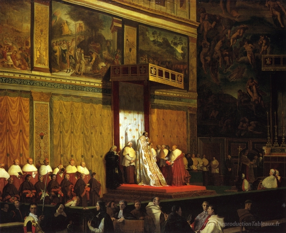Nous vous proposons une reproduction artisanale sur toile du célèbre tableau 'La chapelle Sixtine' de Jean Auguste Dominique Ingres, provenant du Musée de la Reproduction.