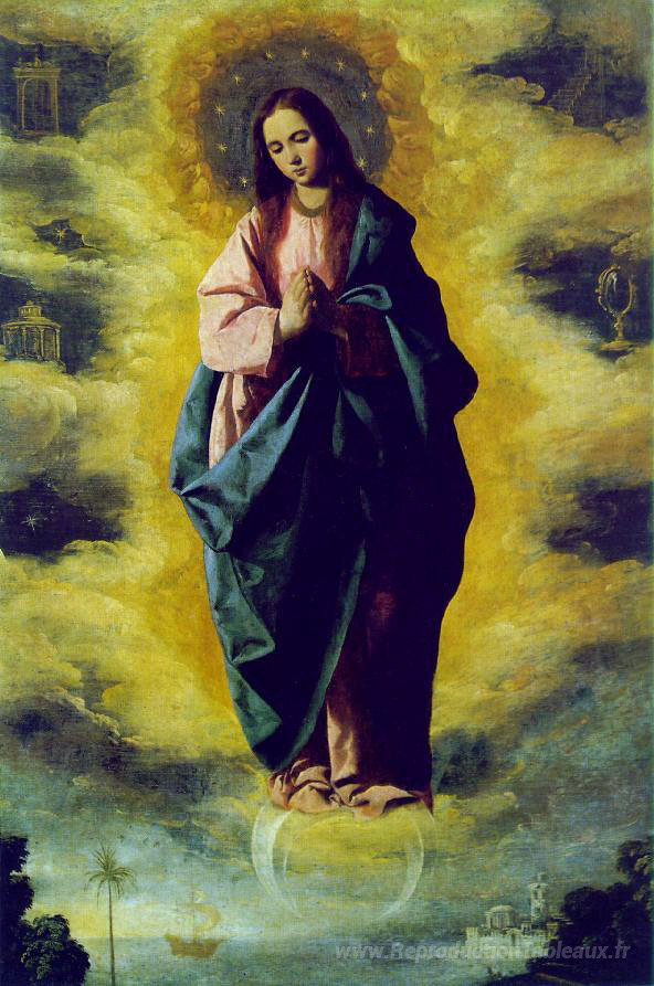 Nous vous proposons une reproduction artisanale sur toile du célèbre tableau 'La conception immaculée' de Francisco de Zurbaran, provenant du Musée de la Reproduction.
