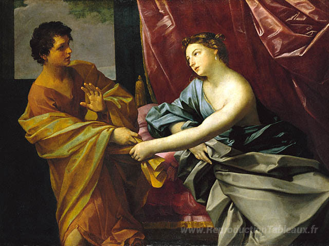 Nous vous proposons une reproduction artisanale sur toile du célèbre tableau 'La femme de Joseph et Potiphar' de Guido Reni, provenant du Musée de la Reproduction.