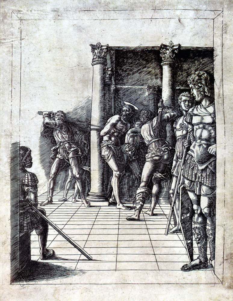 Nous vous proposons une reproduction artisanale sur toile du célèbre tableau 'La flagellation du Christ dans le trottoir' de Andrea Mantegna, provenant du Musée de la Reproduction.