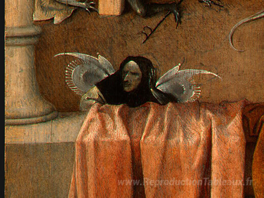 Nous vous proposons une reproduction artisanale sur toile du célèbre tableau 'La mort et le caractère (détail)' de Hieronymus Bosch, provenant du Musée de la Reproduction.