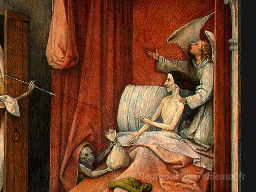 Nous vous proposons une reproduction artisanale sur toile du célèbre tableau 'La mort et le caractère (détail)' de Hieronymus Bosch, provenant du Musée de la Reproduction.