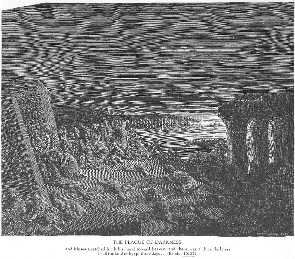 Nous vous proposons une reproduction artisanale sur toile du célèbre tableau 'La neuvième peste. Obscurité' de Gustave Dore, provenant du Musée de la Reproduction.