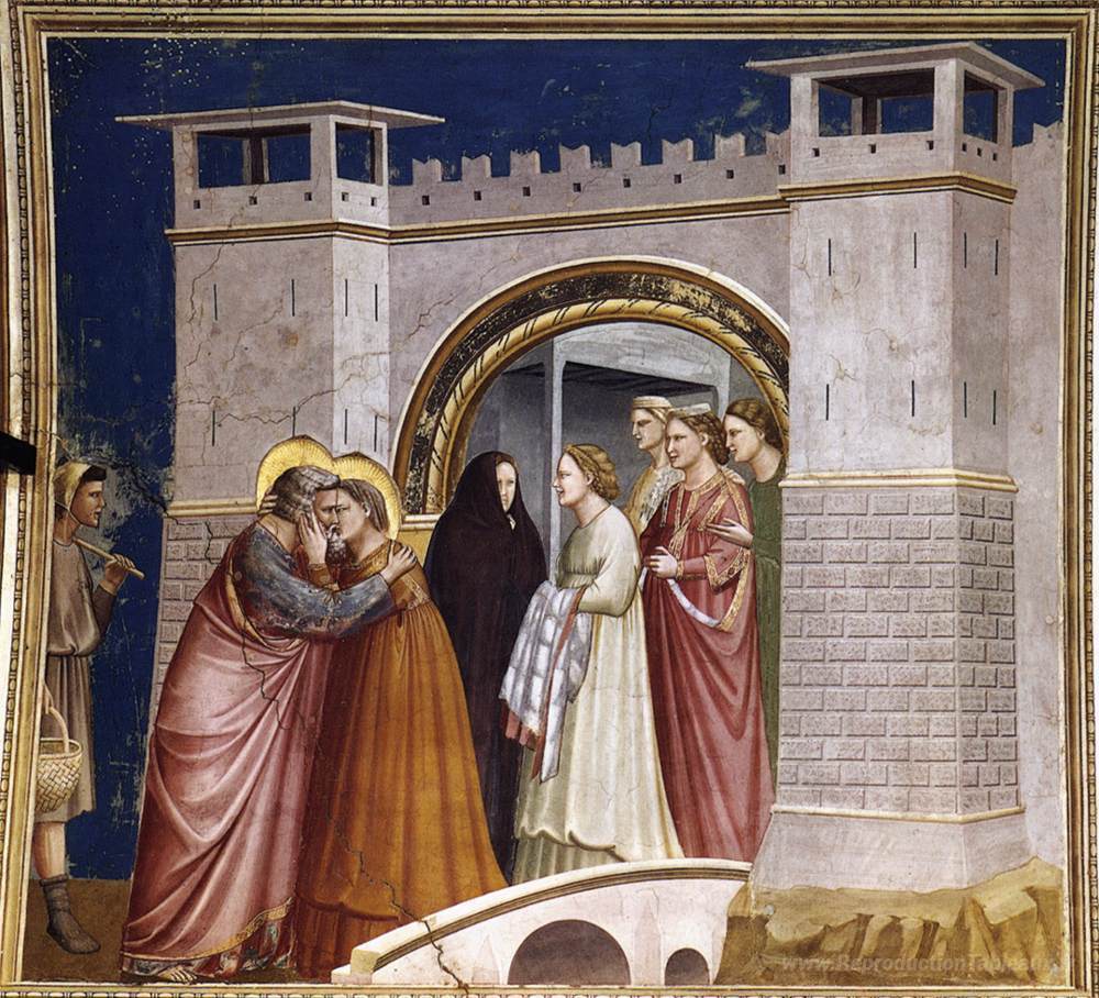 Nous vous proposons une reproduction artisanale sur toile du célèbre tableau 'La réunion au Golden Gate' de Giotto, provenant du Musée de la Reproduction.