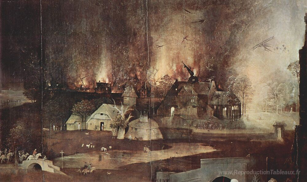 Nous vous proposons une reproduction artisanale sur toile du célèbre tableau 'La tentation de St. Anthony (détail)' de Hieronymus Bosch, provenant du Musée de la Reproduction.