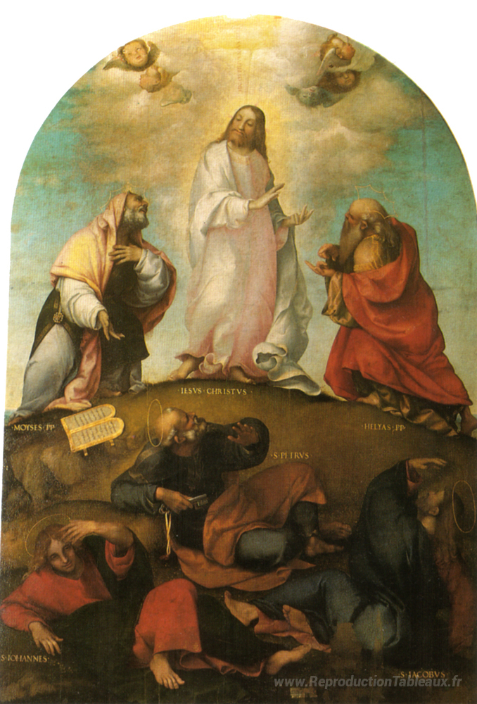 Nous vous proposons une reproduction artisanale sur toile du célèbre tableau 'La transfiguration du Christ' de Lorenzo Lotto, provenant du Musée de la Reproduction.