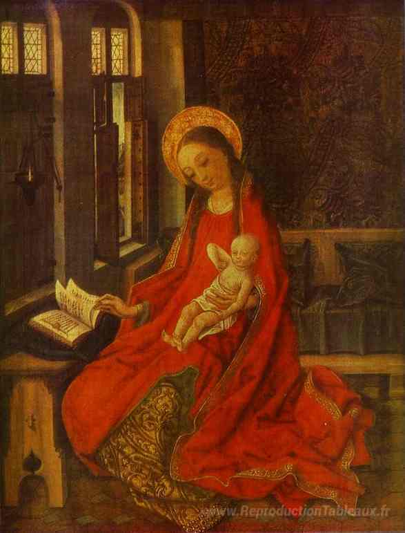 Nous vous proposons une reproduction artisanale sur toile du célèbre tableau 'La vierge avec le nourrisson' de Martin Schongauer, provenant du Musée de la Reproduction.