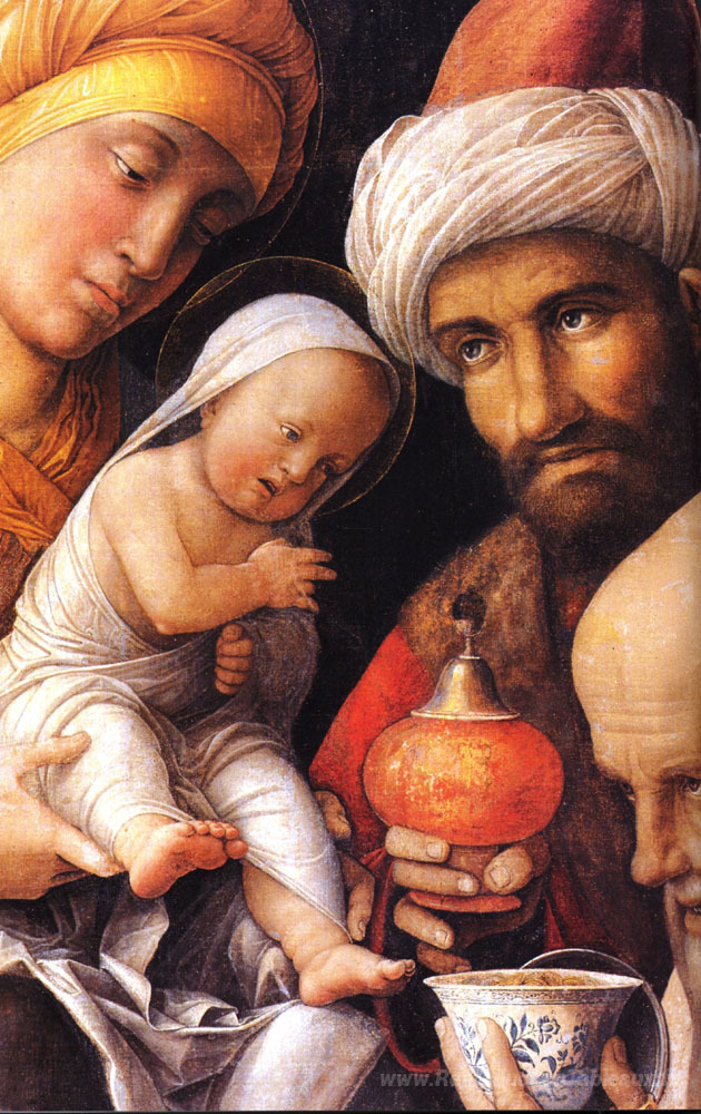 Nous vous proposons une reproduction artisanale sur toile du célèbre tableau 'L'adoration des mages' de Andrea Mantegna, provenant du Musée de la Reproduction.