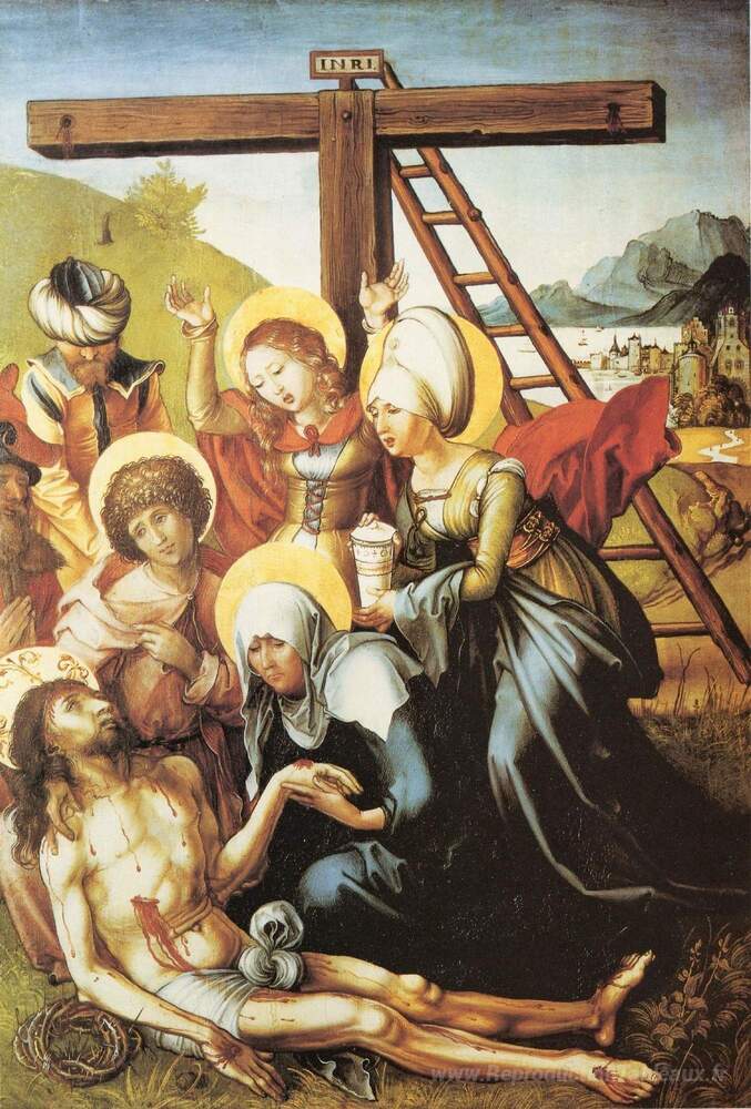 Nous vous proposons une reproduction artisanale sur toile du célèbre tableau 'Lamentation du Christ' de Albrecht Durer, provenant du Musée de la Reproduction.