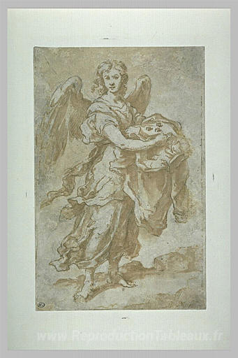 Nous vous proposons une reproduction artisanale sur toile du célèbre tableau 'L'ange tenant la tunique et les dés' de Bartolome Esteban Murillo, provenant du Musée de la Reproduction.