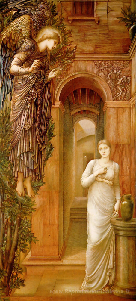 Nous vous proposons une reproduction artisanale sur toile du célèbre tableau 'L'annciation' de Edward Burne-Jones, provenant du Musée de la Reproduction.