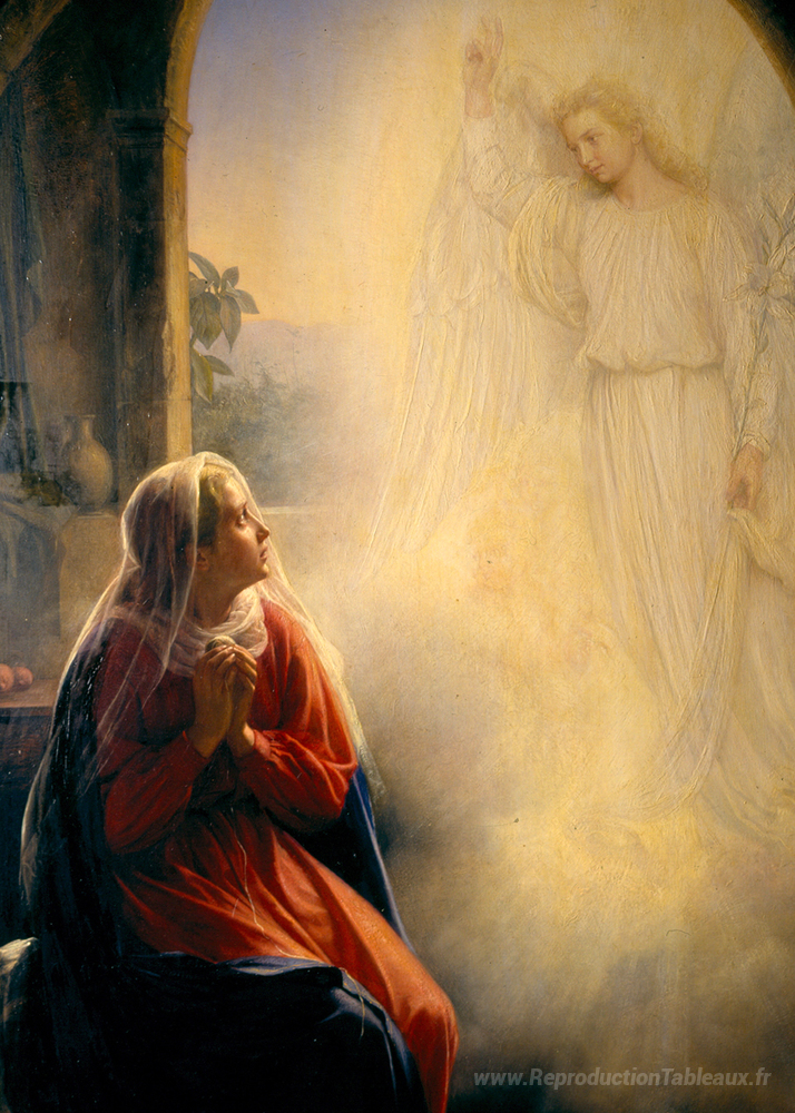 Nous vous proposons une reproduction artisanale sur toile du célèbre tableau 'L'Annonciation' de Carl Bloch, provenant du Musée de la Reproduction.