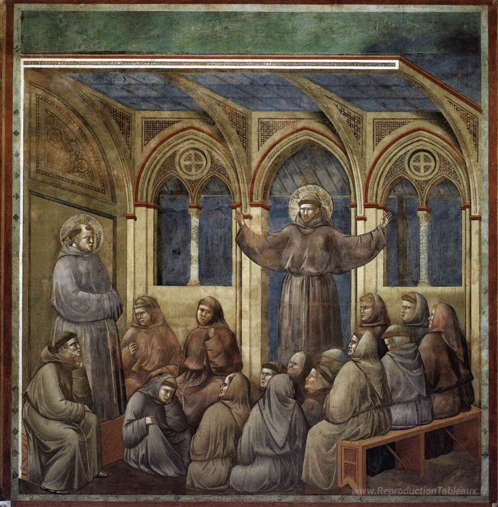 Nous vous proposons une reproduction artisanale sur toile du célèbre tableau 'L'apparition à la maison de chapitre d'Arles' de Giotto, provenant du Musée de la Reproduction.
