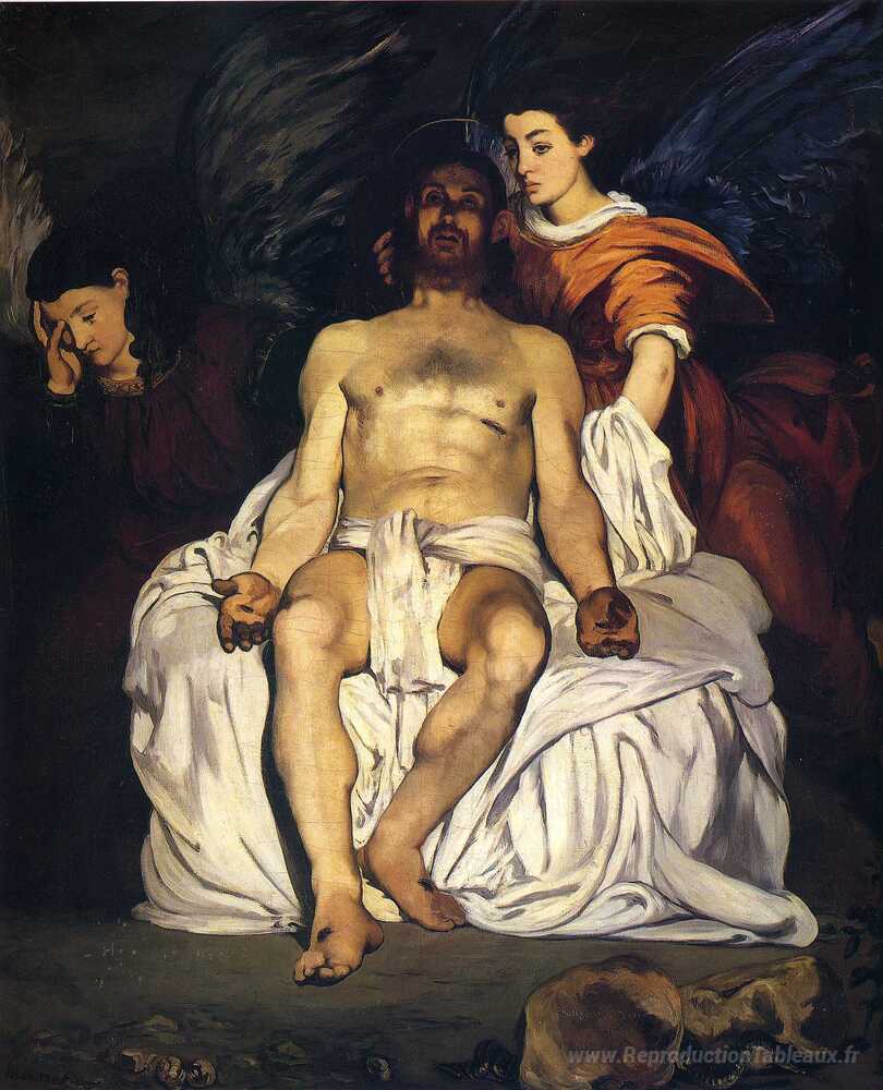Nous vous proposons une reproduction artisanale sur toile du célèbre tableau 'Le Christ mort avec les anges' de Edouard Manet, provenant du Musée de la Reproduction.
