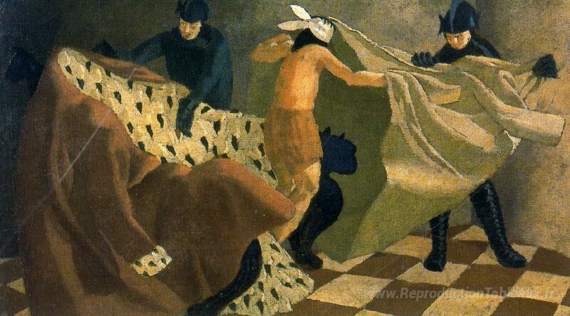 Nous vous proposons une reproduction artisanale sur toile du célèbre tableau 'Le déshabillage du Christ' de Stanley Spencer, provenant du Musée de la Reproduction.