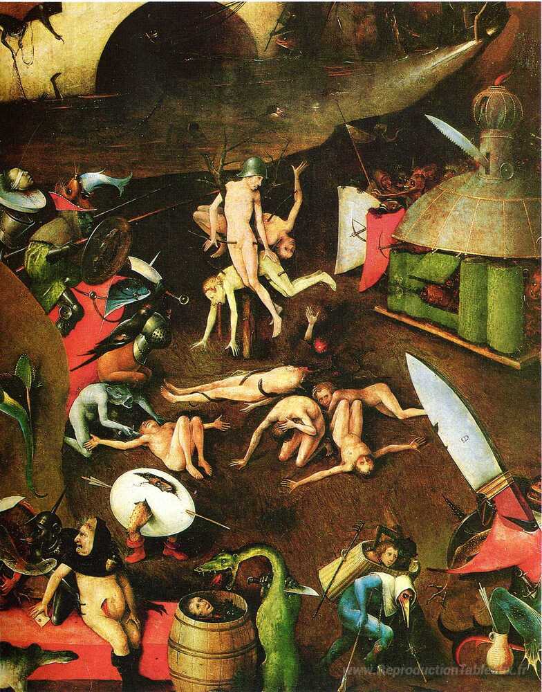 Nous vous proposons une reproduction artisanale sur toile du célèbre tableau 'Le dernier jugement (détail)' de Hieronymus Bosch, provenant du Musée de la Reproduction.