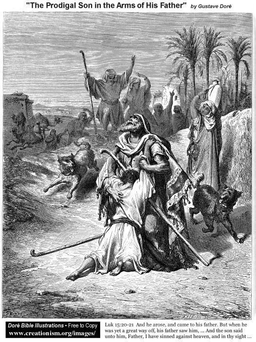 Nous vous proposons une reproduction artisanale sur toile du célèbre tableau 'Le fils prodigue dans les bras de son père' de Gustave Dore, provenant du Musée de la Reproduction.