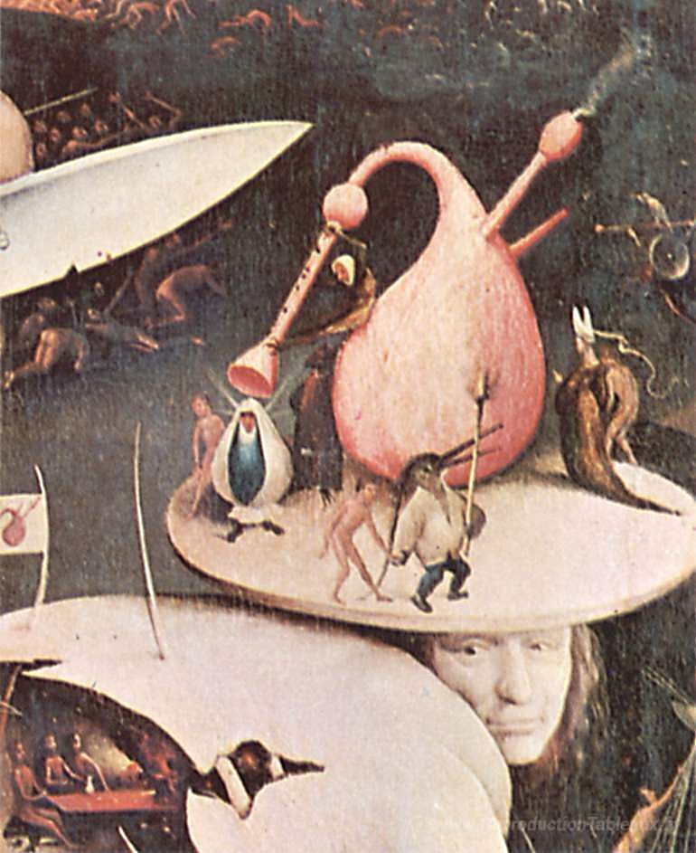 Nous vous proposons une reproduction artisanale sur toile du célèbre tableau 'Le Garden of Earthly Delights (détail)' de Hieronymus Bosch, provenant du Musée de la Reproduction.