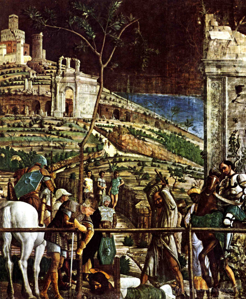 Nous vous proposons une reproduction artisanale sur toile du célèbre tableau 'Le martyre de Saint-Jacques' de Andrea Mantegna, provenant du Musée de la Reproduction.