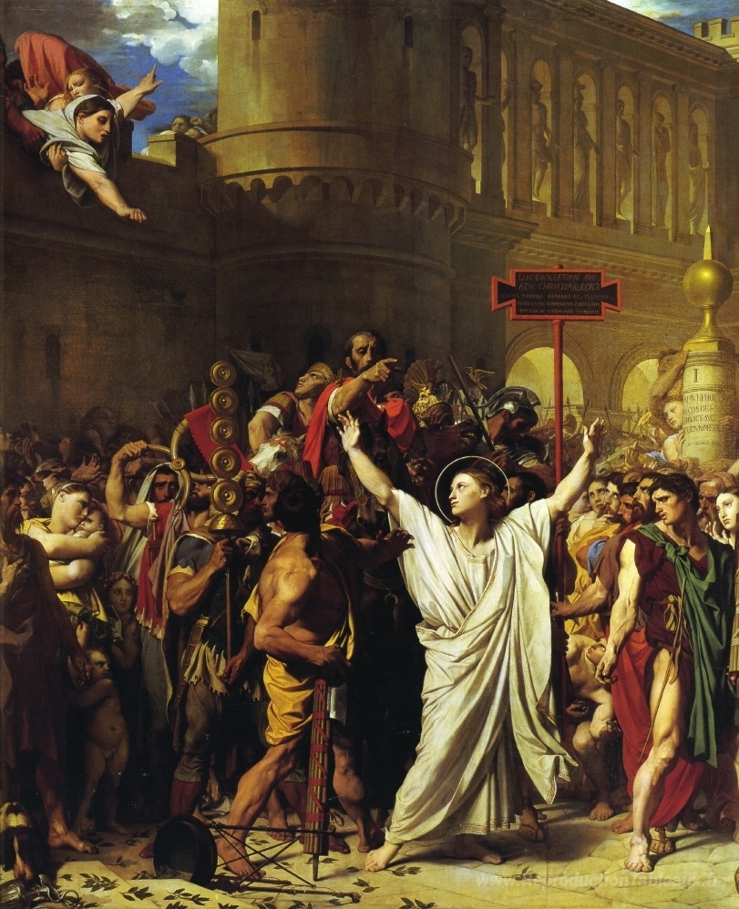 Nous vous proposons une reproduction artisanale sur toile du célèbre tableau 'Le martyre de Saint-symphorien' de Jean Auguste Dominique Ingres, provenant du Musée de la Reproduction.