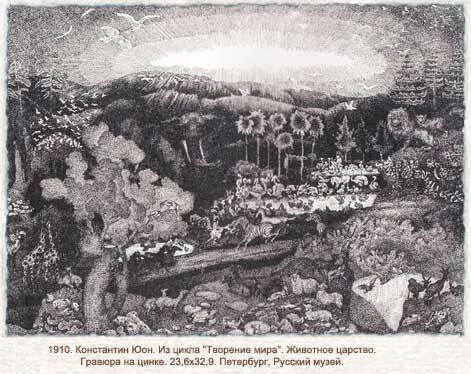 Nous vous proposons une reproduction artisanale sur toile du célèbre tableau 'Le règne animal' de Konstantin Yuon, provenant du Musée de la Reproduction.