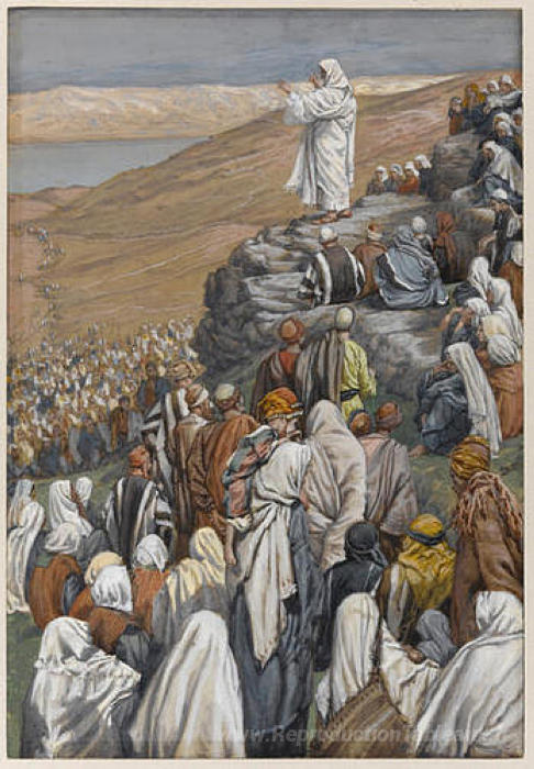 Nous vous proposons une reproduction artisanale sur toile du célèbre tableau 'Le sermon sur la montagne, illustration de «la vie du Christ»' de James Tissot, provenant du Musée de la Reproduction.