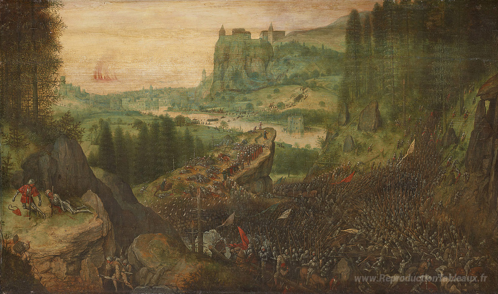 Nous vous proposons une reproduction artisanale sur toile du célèbre tableau 'Le suicide de Saul' de Pieter Bruegel the Elder, provenant du Musée de la Reproduction.